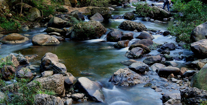 幽谷内两边林木遮日,群石大小各异,古藤千姿百态,并有金龟探月、鸳鸯池、骆驼小憩、天罗地网等几十个自然景观。