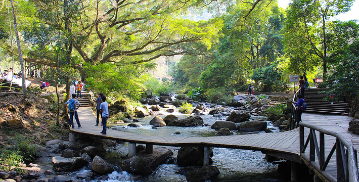 石门国家森林公园内峰山叠翠、云涛波涌,峡谷千姿、幽谷百态,石灶天池、绿水青山相映生辉;巍峨石门、相思古榕形影相随。