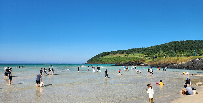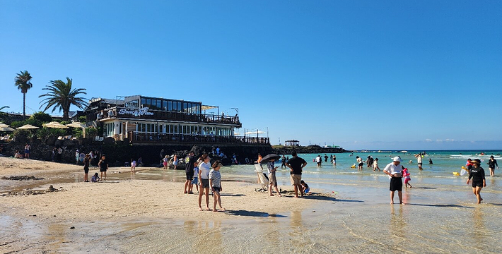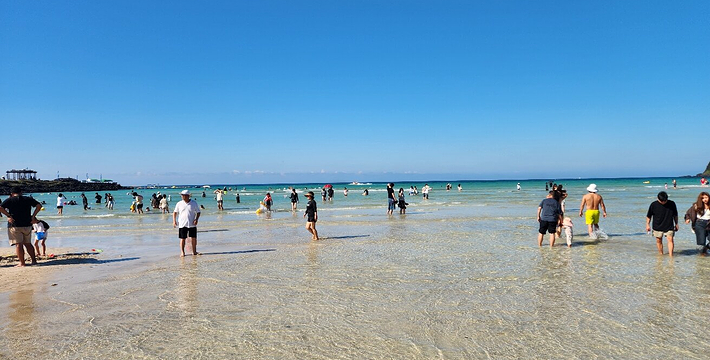 济州市东部的咸德海水浴场是十分受大众青睐的避暑胜地。这里的沙滩十分干净,而且浴场水浅,倾斜度完美,适合与孩子一起戏水。 咸德海水浴场同时可容纳5万名游客,各项配套设置非常完善。咸德海水浴场和犀牛峰遥遥相望,波浪适中的日子,在海中冲浪一番也是不错的选择。在济州特有的玄武岩海边,耸立着为渔民们指引方向的灯塔,和周围的风景完美的结合在一起,构成一幅美丽的风景画。 此地又是济州岛首屈一指的西瓜产地,海水浴场沿边而设的海鲜店里可以尝到新鲜的生鱼片,在海水浴场东边2公里处有北村钓鱼场。