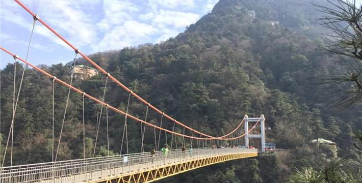 相传朱元璋与陈友谅大战于鄱阳湖,后朱元璋兵败被逼逃上庐山,带着所剩无几的残兵败将慌不择路逃到了悬崖边,下临深谷,前无去路,后有追兵,正在这危急之时,突然天降金龙化作虹桥,朱兵马刚刚过桥脱险,刹时晴天霹雳巨响,龙飞桥断,就此留下天桥奇观。后来朱元璋做了皇帝,这一美好传说流传至今。后人就势修筑一凌空巨石于深涧上游底部,游人或蹲或立于巨石前端,以远处悬崖作背景,利用视差可以拍得一张感觉惊险的“天桥留影”。