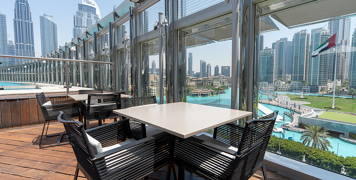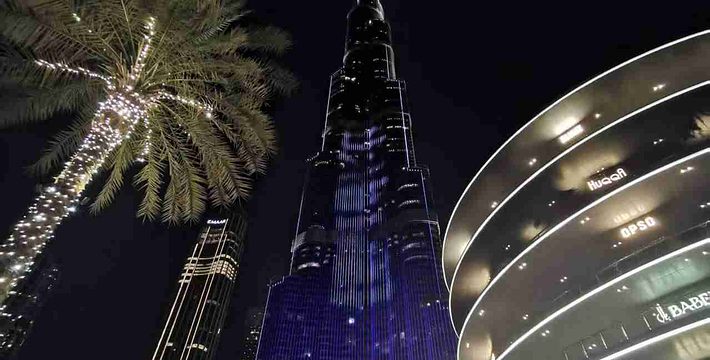 搭乘地铁M红线至Burj Khalifa/ Dubai Mall站。