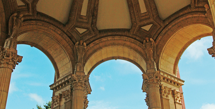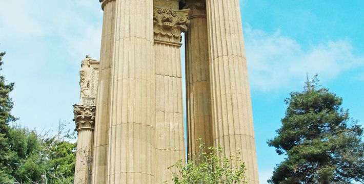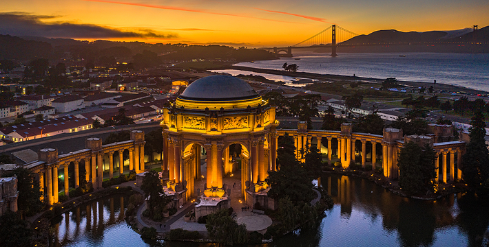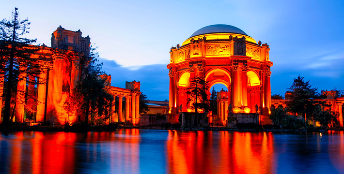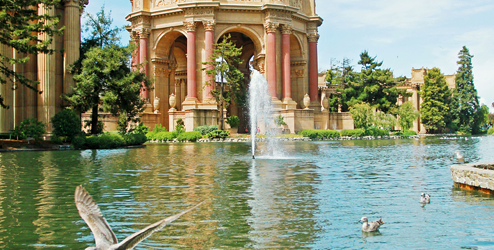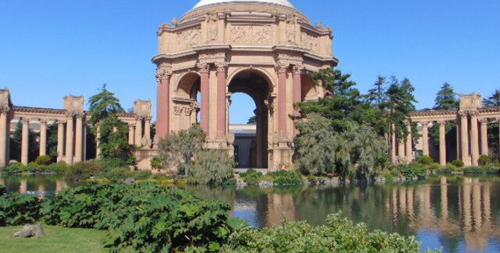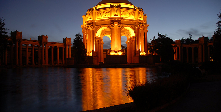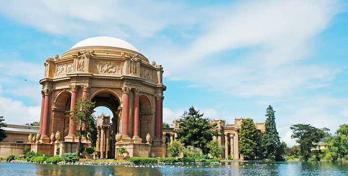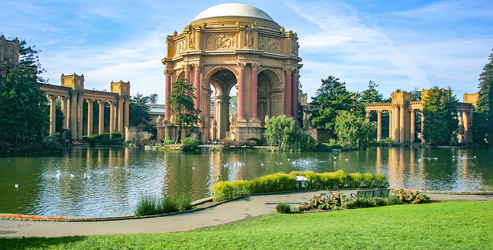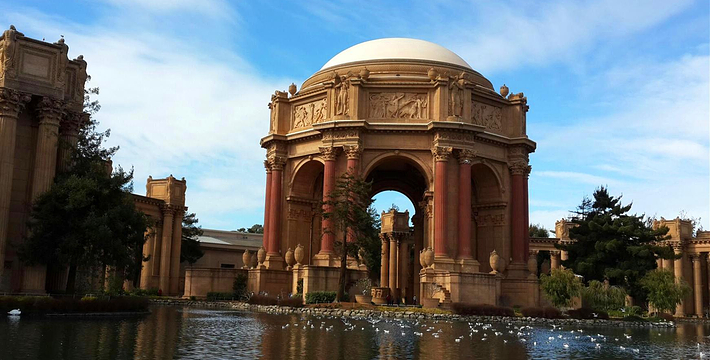 美国旧金山艺术宫原建于1915年,本是为了巴拿马“太平洋万国博览会”所盖,当时曾吸引了1800万游客参观,但在会后就被废弃,一直到1962年才委请著名德裔建筑师梅贝克(Bernard Maybeck)来设计重修,他专长细部装修,这是这座「艺术宫」精雕细琢风格的由来。 这座仿古罗马废墟的建筑,是由纽约市出生并居住在柏克莱的建筑师梅贝克(Bernard Ralph Maybeck(1862-1957))所设计的,艺术宫建筑的设计主要是要向世人展现一个视觉上的壮观美感,起建于1913年12月8日。艺术宫主要是一个圆顶的大厅,配上拱门和石柱。在建筑艺术宫时,因考虑到这只是为了举办博览会而建的临时建筑,所以工程师以一些简单的建材(石膏及纤维的混合物)来搭建。1915年10月的艺术保存日,支持保存艺术宫的人士收集了33,000个签名并且筹集了三十五万美元的经费来重建艺术宫并使用永久性的建材,原本应该拆除的艺术宫在旧金山居民的反对下而得以保存下来。