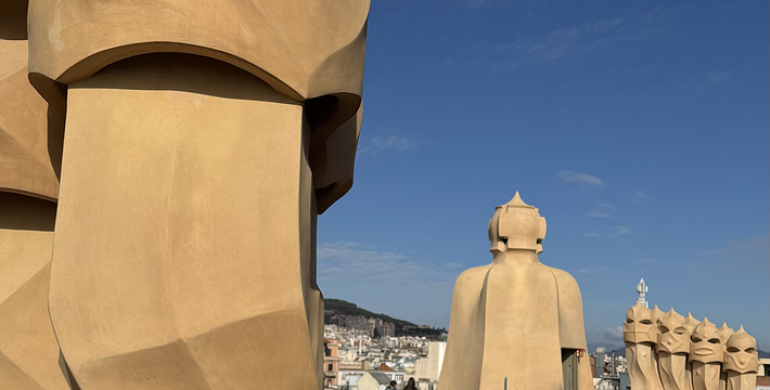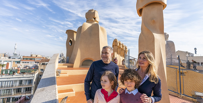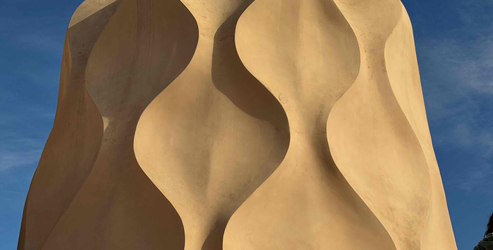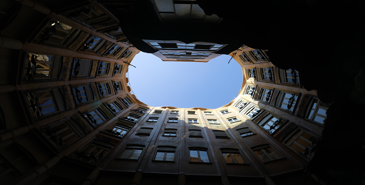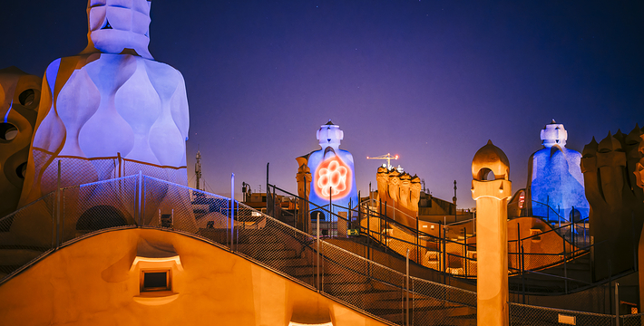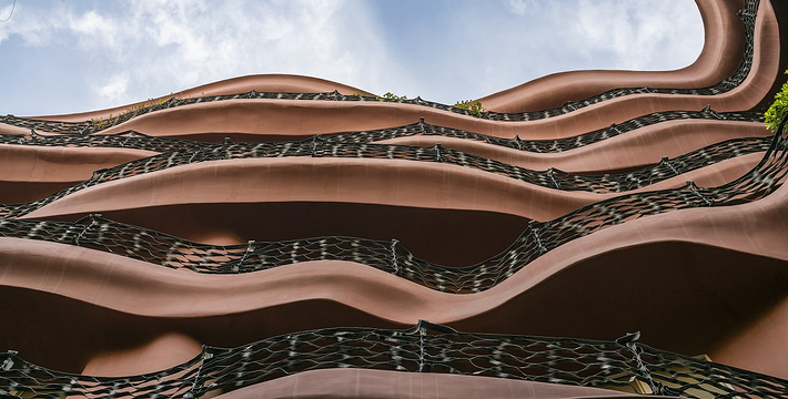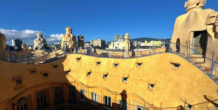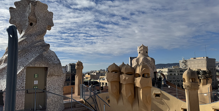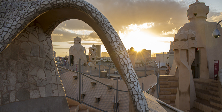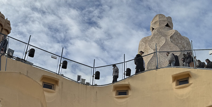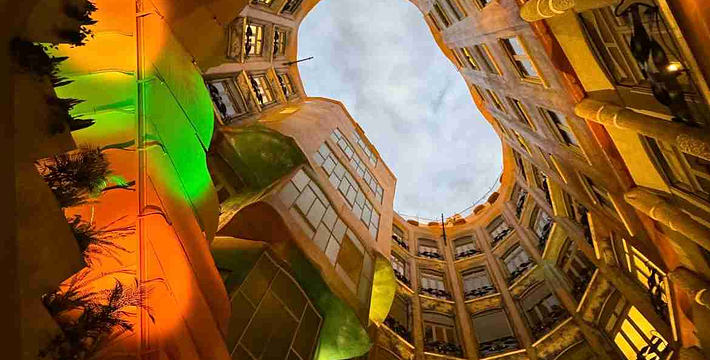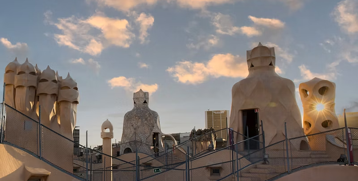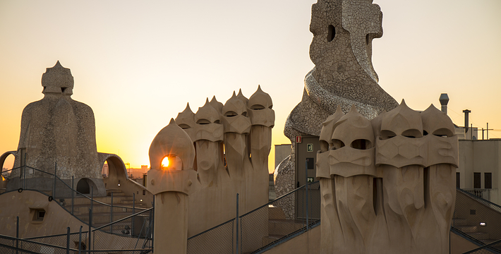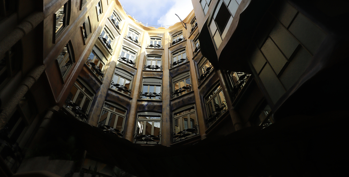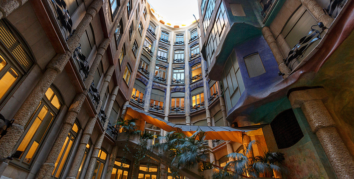 在西班牙巴塞罗那的帕塞奥.德格拉西亚大街上,坐落着一座纯粹现代化风格的楼房-米拉公寓,又名“采石场”。它以怪异的造型而闻名于世,是由西班牙建筑设计师安东尼 ·高迪专门为实业家佩德罗·.米拉设计建造。米拉公寓位于街道转角,地面以上共有六层,墙面凹凸不平,到处可见蜿蜒起伏的曲线,整座大楼宛如波涛汹涌的海面,富于动感。高迪还在米拉公寓房顶上造了一些奇形怪状的突出物,有的像披上全副盔甲的军士,有的像神话中的怪兽,有的像教堂的大钟。其实,这是特殊形式的烟囱和通风管道。后来它们与古埃尔公园和圣家族大教堂一样,也成了巴塞罗那的象征。