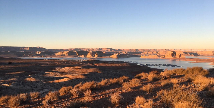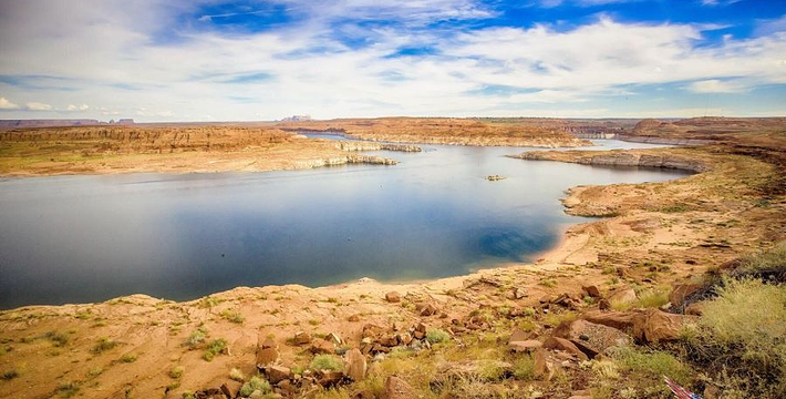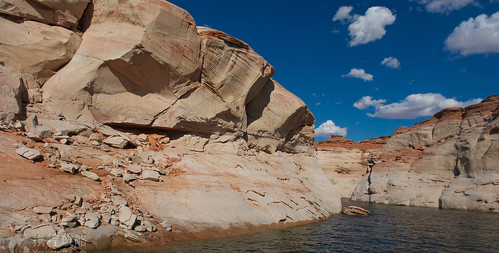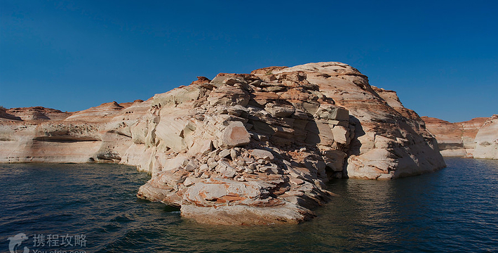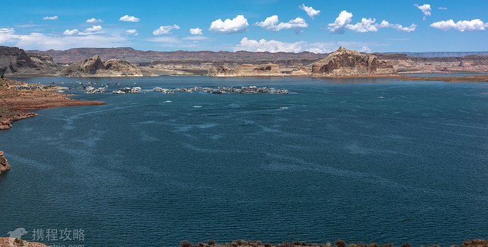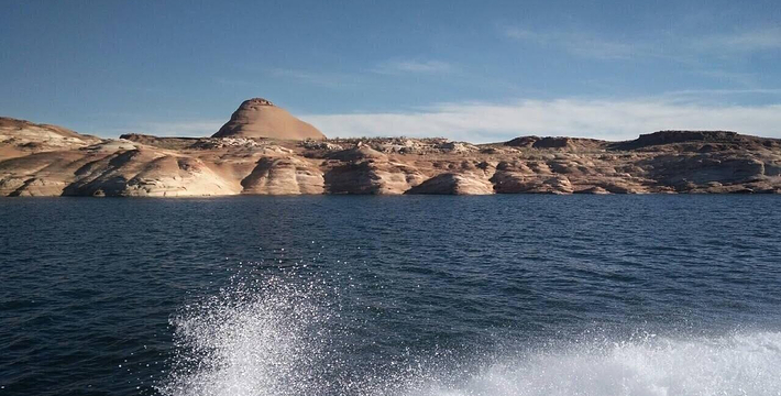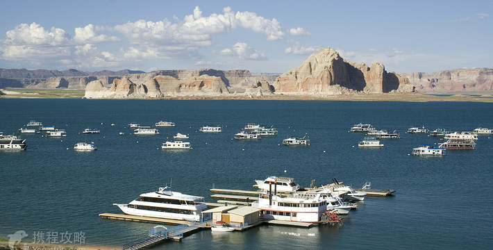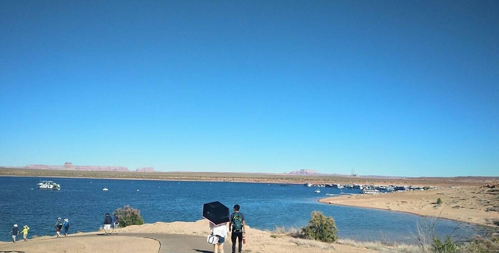 鲍威尔湖(lake powell)的面积是米德湖的两倍多,有各种红色砂岩、石拱、峡谷和万面碧波,其风景远胜米德湖,已成为美国西南部的主要国家渡假区。 1956年,建筑格伦峡谷水坝时就已经着手建造鲍威尔湖了,但直到1980年将科罗拉多州、圣胡安州的河流以及埃斯卡兰特河流的水引入之后它才真正意义上完工。