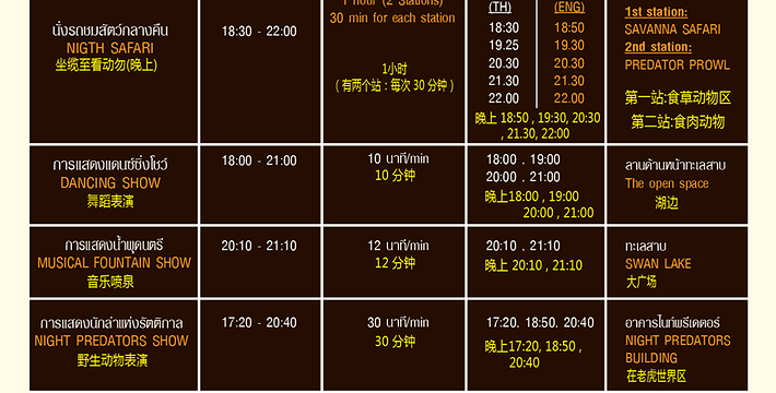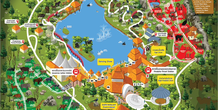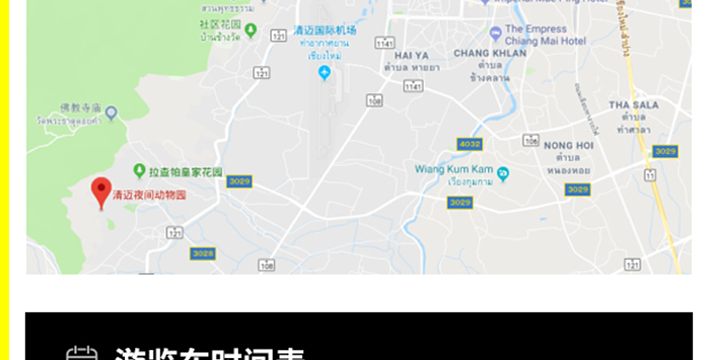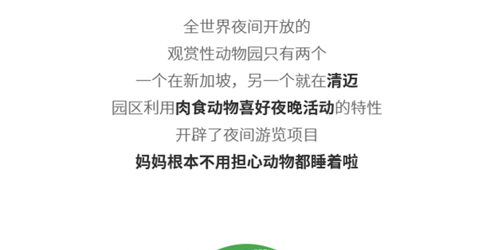 位于素贴山下的清迈夜间动物园占地近百亩。园中除了有各种珍奇动物外,还有风景花园、瀑布和湖泊,风景非常优美,在山顶上还可以俯视整个清迈城。