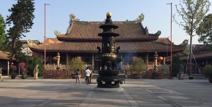 潮州开元镇国禅寺始建于唐开元26年(公元738年),原即敕名开元寺,明代改开元镇国禅寺后延用至今,但一般仍习惯以“开元寺”称之,占地百亩之多,且至今仍存有北至广源街、东至开元路口、西于义安路内的寺界碑石或“开元古井”为证,虽经历代沧桑,至今全寺仍有约五十亩之广。开元寺经宋元明清至近代,先后十余次大规模整修,其中,非常值得国内外建筑界研究、观摩的是以(天王殿)为代表的宋代建筑群。这些以木料构筑的主要殿阁,是以木榫紧密衔接的,并以雕刻着龙头的斗拱送起支撑;殿顶为四重檐、双滴水,还有葫芦、鸱屋、双龙抢珠等嵌瓷装饰及琉璃瓦、彩绘丹墙等,历经千余年,虽经多次天灾人祸,至今仍保持着与日本东大寺相似的唐宋宫殿式建筑壮严肃穆的风格,所以得有“古代建筑艺术明珠”的美誉。除此之外,殿前四座石经幢,是建寺时所造,分别高5米8层或7米25层,其线条明快、凝炼的雕刻手法,让力士、覆莲、准提咒等图案文字,至今仍有可观;而大雄宝殿前的78块栏,分别刻有释迦牟尼佛八相成道的故事。