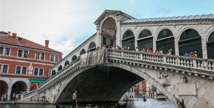 在威尼斯有400多座桥,建于1180年,它又名商业桥,原为一座木桥,1580~1592年改建为石桥,是威尼斯的象征。桥长48米,宽22米,离水面7米高,桥上中部建有厅阁,两侧店铺林立,销售各种纪念品和特产。这里每天有很多游客,既可从桥上眺望运河,又可在两侧的商店购物,完全沉浸在威尼斯气氛中。其中莎士比亚的名剧《威尼斯商人》就是以这里为背景。桥梁项目总监萨尔瓦托雷·