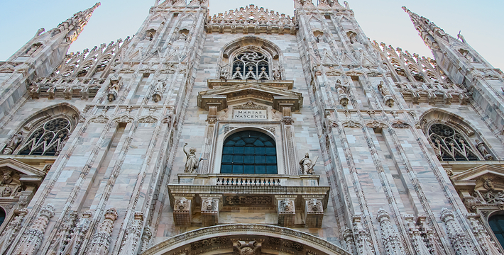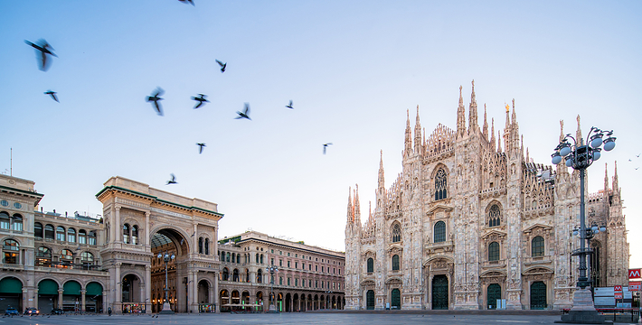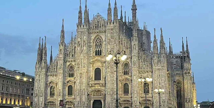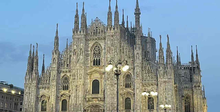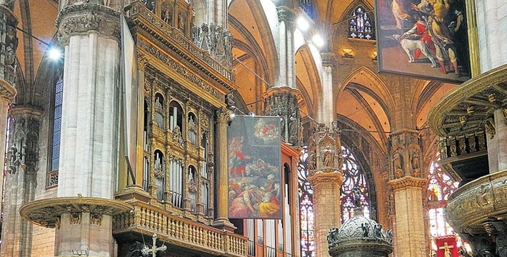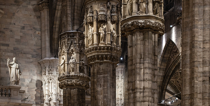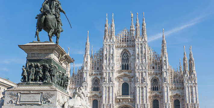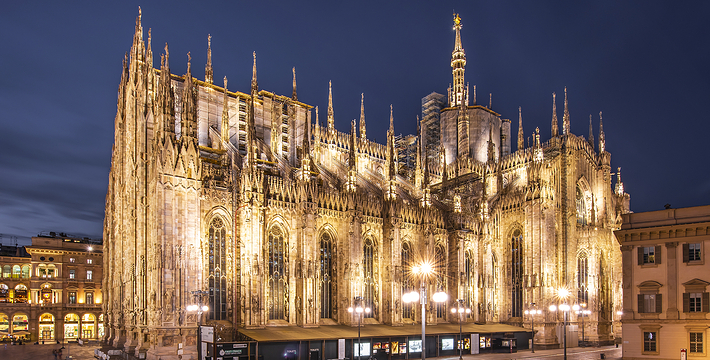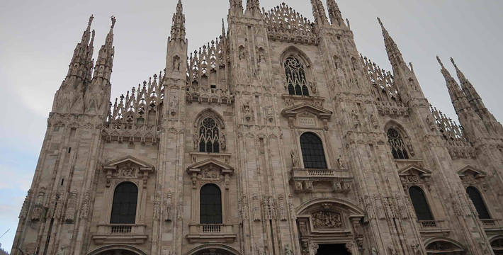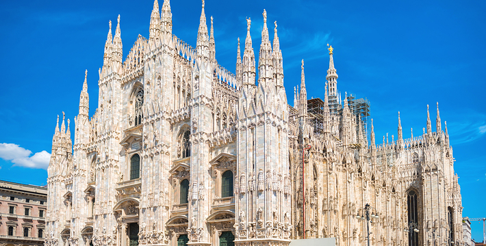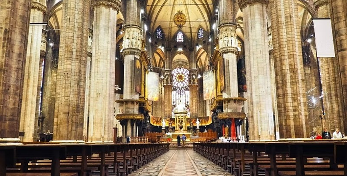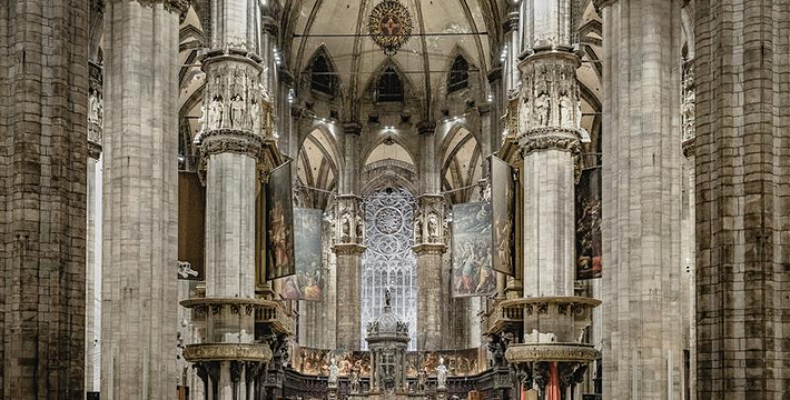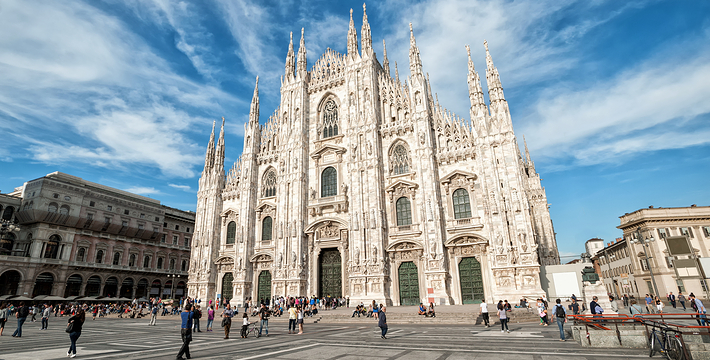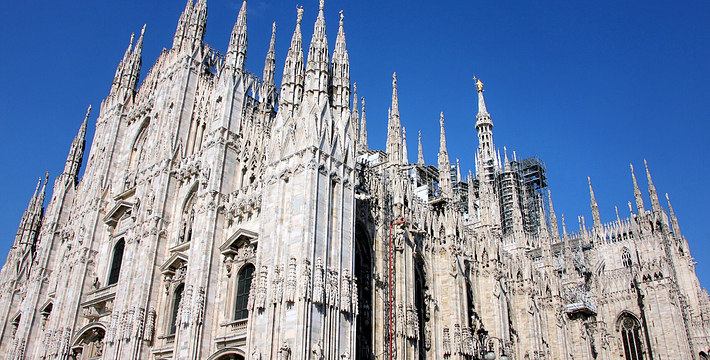 规模居世界第二。米兰位于阿尔卑斯山南麓奥隆那河畔,是一座历史悠久的古老名城,是意大利的第二大城市。它 于公元1386年开工建造,1500年完成拱顶,1774年中央塔上的镀金圣母玛丽亚雕像就位。1897,历时五个世纪。不仅是米兰的象征,也是米兰的中心。拿破仑曾于1805年在米兰大教堂举行加冕仪式。有“米兰的象征”之美称。主教堂始建于1386年,由米兰望族吉安·维斯孔蒂主持奠基。1500年完成拱顶,1774年中央塔上的镀金圣母玛丽亚雕像就位。1813年教堂的大部分建筑完工。1897,历时五个世纪。1805年拿破仑曾在米兰大教堂举行加冕仪式。至1965,才算全部竣工。 1386年·加莱亚佐·维斯孔蒂(Galeazzo Visconti Ⅲ)怂恿下,这座教堂开始兴建,各国工程师纷纷设计方案。吉安·加莱亚佐·维斯孔蒂希望这一举措能感动上帝.赐他一个男性继承人。上帝施恩于他,可就在15世纪早期,维斯孔蒂的后代——残暴的乔瓦尼·马里亚在上台后不久就遭暗杀。 这一建筑工程持续了约5个世纪,完工前的装饰润色是于1809年根据拿破仑的命令完成的。1577年完成了初步的建筑,开始供信奉天主教人士参拜。