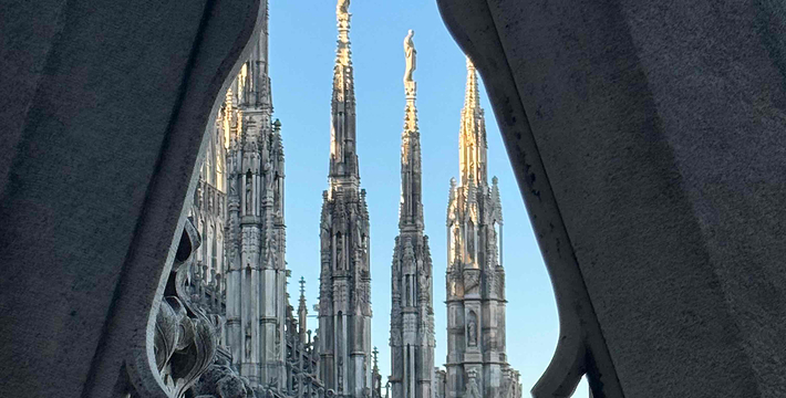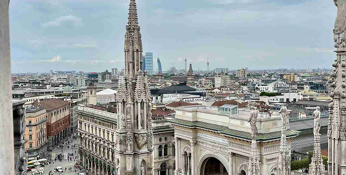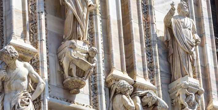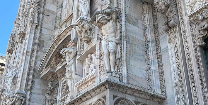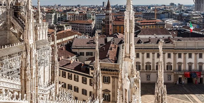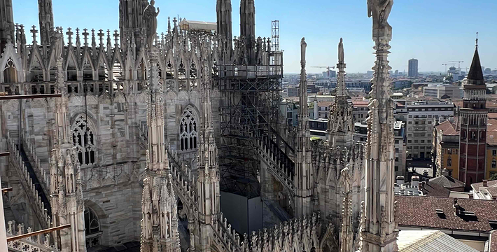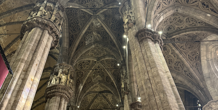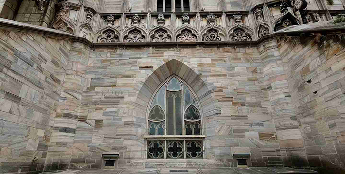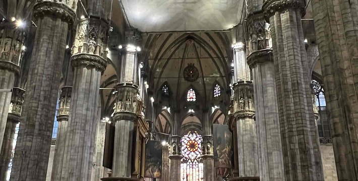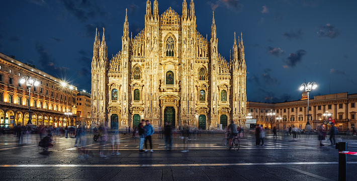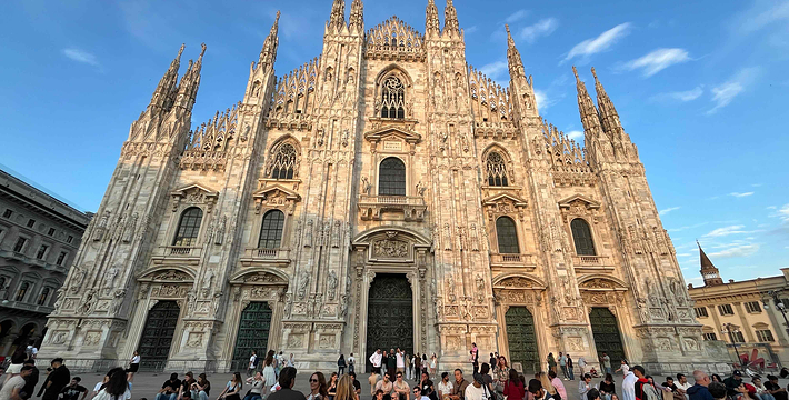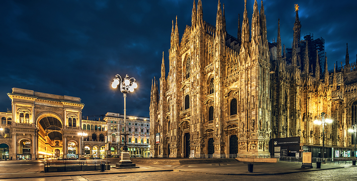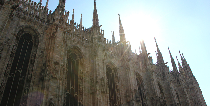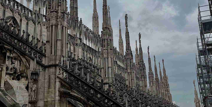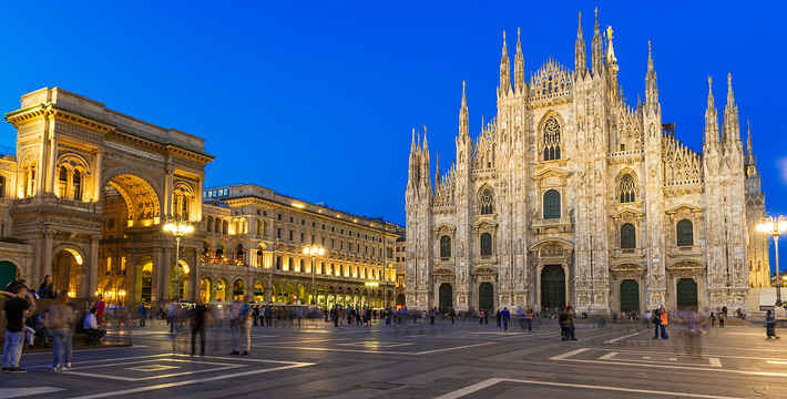 规模居世界第二。米兰位于阿尔卑斯山南麓奥隆那河畔,是一座历史悠久的古老名城,是意大利的第二大城市。它 于公元1386年开工建造,1500年完成拱顶,1774年中央塔上的镀金圣母玛丽亚雕像就位。1897,历时五个世纪。不仅是米兰的象征,也是米兰的中心。拿破仑曾于1805年在米兰大教堂举行加冕仪式。有“米兰的象征”之美称。主教堂始建于1386年,由米兰望族吉安·维斯孔蒂主持奠基。1500年完成拱顶,1774年中央塔上的镀金圣母玛丽亚雕像就位。1813年教堂的大部分建筑完工。1897,历时五个世纪。1805年拿破仑曾在米兰大教堂举行加冕仪式。至1965,才算全部竣工。 1386年·加莱亚佐·维斯孔蒂(Galeazzo Visconti Ⅲ)怂恿下,这座教堂开始兴建,各国工程师纷纷设计方案。吉安·加莱亚佐·维斯孔蒂希望这一举措能感动上帝.赐他一个男性继承人。上帝施恩于他,可就在15世纪早期,维斯孔蒂的后代——残暴的乔瓦尼·马里亚在上台后不久就遭暗杀。 这一建筑工程持续了约5个世纪,完工前的装饰润色是于1809年根据拿破仑的命令完成的。1577年完成了初步的建筑,开始供信奉天主教人士参拜。