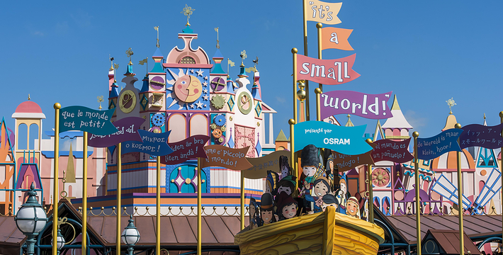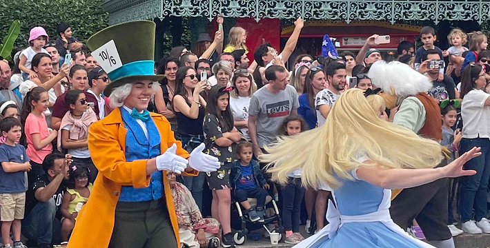 迪士尼乐园以五大园区组成,正门的Main Street USA满是旧日美国牛仔时代的小镇风光,令人有进入时光隧道之感。Adventureland风靡世界的大轮船,以及大峡谷的峻峭山势,