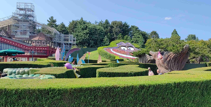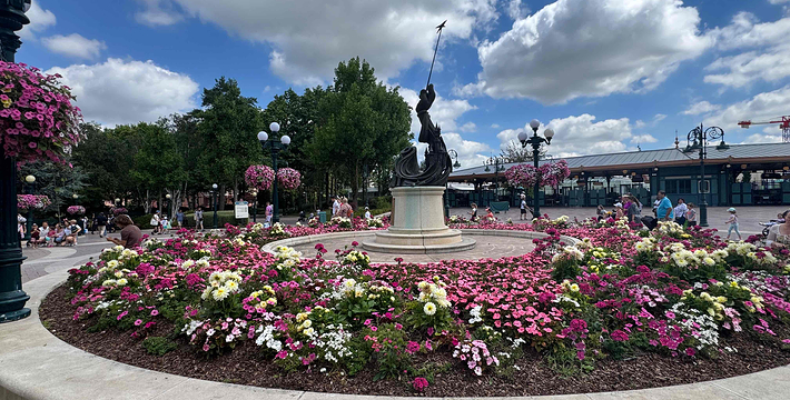 道、建筑物的雕饰,乃至于树丛花圃的造型,都设计得精致优雅,跟其它的迪斯尼乐园很不一样,颇有欧洲古典宫廷花园的感觉。