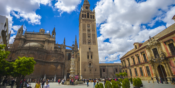塞维利亚大教堂(Cathedral de Seville)是西班牙南部安达卢西亚区省会城市塞维利亚市内的著名宗教名胜,仅次于罗马的圣彼得教堂和伦敦的圣保罗教堂,位居欧洲第三位的大教堂。1987年被联合国教科文组织宣布为世界文化遗产名录。