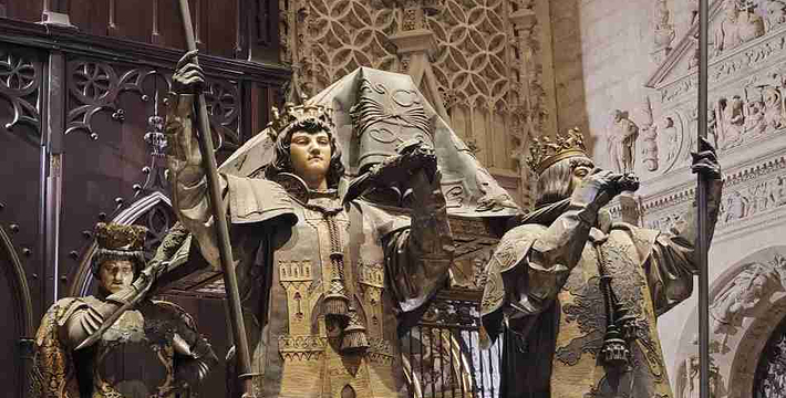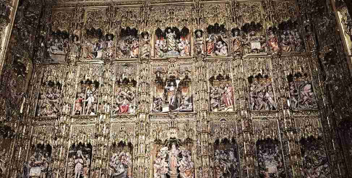 塞维利亚大教堂(CatedraldeSevillay)是西班牙南部安达卢西亚区省会城市塞维利亚市内的著名宗教名胜。塞维利亚市分布于瓜达尔基维尔河左岸,距河口12千米,为内陆河港,港内涨潮时可通海轮。从公元711年到1248年间曾先后为哥特人及摩尔人所建王国的都城.旅游业因名胜和交通条件而发达。是仅次于罗马的圣彼得教堂和伦敦的圣保罗教堂,位居欧洲第三位的大教堂,该教堂建于15世纪初,在原伊斯兰教寺院的旧址上改建而成。
