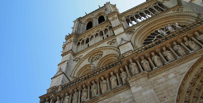 圣母院的法文原名"Notre Dame"原意"我们的女士",这位女士不是指别人,正是意指耶稣的母亲圣母玛丽亚。圣母巴黎圣母院照片(20张),根据教堂地底下挖掘出来的一些文物,该地点被作为宗教用途的历史,可以回溯到罗马的提庇留大帝(Emperor Tiberius)时代,在西堤岛的东半部上可能建有一座用来祭祀罗马与高卢神祇的神殿。圣母院的旧址有着曲折的历史,4世纪时是一座用来祭拜圣史蒂芬的基督教教堂,6世纪时又成为一座罗马式教堂,而这座教堂有12块基石取自原先罗马神殿的遗址。也有说法认为大教堂是在墨洛温王朝(Mérovingiens)的希尔德贝尔特一世(Childebert I)在528年时,以先前已经存在的教堂为基础进一步改建。到了12世纪路易七世时期,原有的罗马式教堂已经毁损不堪,在1160年被选任为巴黎主教的莫里斯·德·苏利(Maurice de Sully)决定在这个地方建造一座可以和圣坦尼大教堂(the Cathedral of St. Etienne)媲美的宏伟教堂。也有史料显示,在这里曾有两个教堂,一个是圣坦尼大教堂,另一个是圣母玛丽亚教堂。圣坦尼大教堂早在10世纪时,就已经成为巴黎、或整个法国的宗教中心。但是,也正因为这样的重要性,人们开始发现原有的圣史蒂芬教堂与其所承担的重任不相符,再加上原本的教堂已经随着时间而老旧,而开始思索重新修筑教堂。现在的巴黎圣母院始建于1163年,在1345年建成。该教堂曾经是全欧洲工匠组织和教育组织集会的地方。因为这些历史渊源(Sorbonne),便坐落于此。18世纪末的法国大革命时期,教堂的大部分财宝都被破坏或者掠夺,处处可见被移位的雕刻品和砍了头的塑像,此时圣母院已是千疮百孔了。之后教堂改为理性圣殿,后来又变成藏酒仓库,直到1804年拿破仑执政时,才将其还为宗教之用。在今日,圣母院依然是法国哥特式建筑的旷世杰作。圣母院也展现了哥特式教堂的发展史。