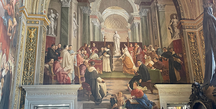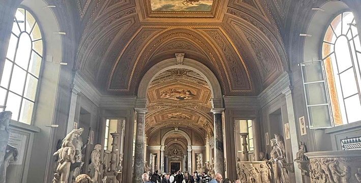 梵蒂冈博物馆位于意大利罗马圣彼得教堂北面,原是教皇宫廷。所收集的稀世文物和艺术珍品,堪与伦敦大英博物馆和巴黎卢浮宫相媲美。总面积5.5万平方米。广大的梵蒂冈博物馆有六公里的展示空间,著名的西斯汀教堂(Sistine)就在其中是欧洲排名第三或第四的艺术殿堂。