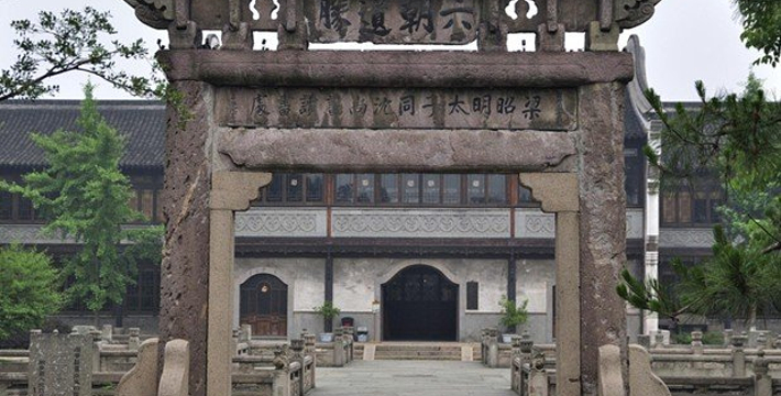 昭明书院得名于曾在乌镇筑馆读书的南朝梁昭明太子萧统。萧统编辑整理的《文选》。在很长一段时间,《文选》和后来的《古文观止》、《唐宋八大家文钞》等是古代读书人案头必备的文学读本,影响深远。书院坐北朝南,半回廊二层硬山式古建筑群。主楼为图书馆,收藏有文化、社会科学、艺术、休闲旅游等方面的图书和杂志可供阅览,并设有电子阅览室、讲堂、书画、教室等。中为校文台,为著述编校之处。前方庭园中有四眼水池,四周古木参天,浓荫匝地。正门入口有明朝万历年间(1573—1620)建立的一座石牌坊,高3.75米,面宽3.8米,上题“六朝遗胜”,龙凤板上为刑科给事中,里人沈士茂题写的“梁昭明太子同沈尚书读书处”字样,“文革”时被有心人涂上石灰故得以幸存,1981年经桐乡县人民政府加以修整,列为县级文物保护单位。书院西为拂风阁,是喝茶、读书、交流的场所,水池中央有明代经幢。晚风轻拂时,坐在露天的亲水平台上捧一卷美文,品一壶香茶,闻一曲琴韵,会让你深深体会到读书的快乐。书院后侧是茅盾文学奖获奖作家及作品展馆。乌镇是文学巨匠茅盾的故乡,自第五届开始乌镇已经成为茅盾文学奖的永久颁奖地,这个展馆里陈列着历届茅盾文学奖获奖作家的照片、介绍和获奖作品。