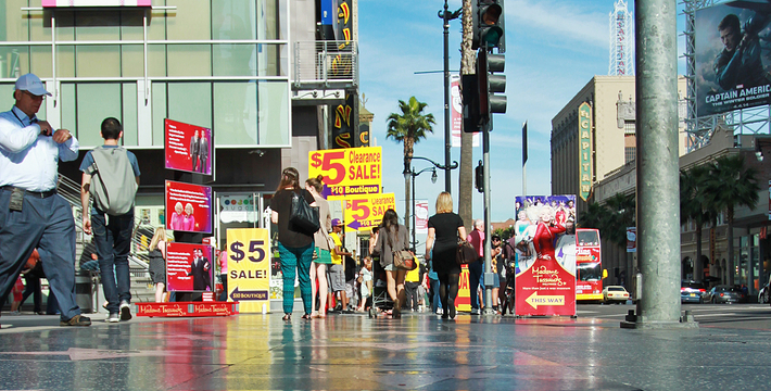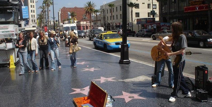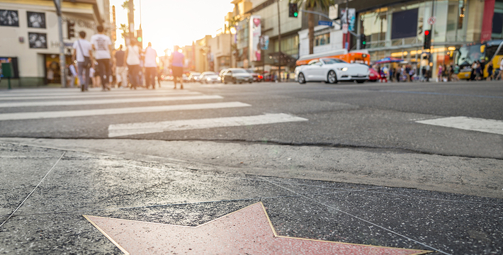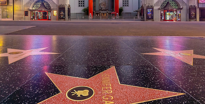 好莱坞星光大道(Hollywood Walk of Fame)建于1958年,是条沿美国好莱坞大道与藤街伸展的人行道,以纪念他们对娱乐工业的贡献1960年2月9日颁赠予琼安·伍德沃德(Joanne Woodward)。到了2006年4月20日凡娜·怀特(Vanna White)得到该荣誉时,上面共有2309颗星。星光大道沿着好莱坞大道自东边的高尔街(Gower Street)延伸至西边的拉布雷亚大道(La Brea Avenue),然后顺着丝兰街(Yucca Street)与日落大道(Sunset Boulevard)之间的藤街由北向南推进。除非偶尔因附近施工或其他理由而更换位置外,大道上的星形奖章位置是永久不变的。每颗星皆由一颗水磨石制成:将其制成粉色五角星形并镶上青铜然后嵌入深灰色的方块中。粉色星形内是刻在青铜上的授奖者名字,在此下面则为一环状标志,代表受奖人领取星星的领域。