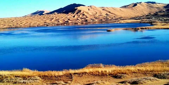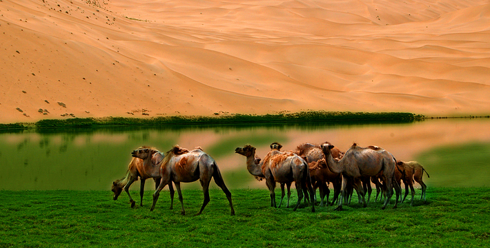 巴丹吉林沙漠,位于内蒙古自治区的西部,是世界四大沙漠之一,总面积4.7万平方公里。其中的巴彦诺尔。巴丹吉林沙漠年降水量不足40毫米,但是沙漠中的湖泊竟然多达100多个。高耸入云的沙山,神秘莫测的鸣沙,静谧的湖泊、湿地,构成了巴丹吉林沙漠独特的迷人景观,每年吸引了上万名国内外游客前来观光。海拔1609米,相对高度500米,号称“沙漠珠穆朗玛”,被誉为“世界鸣沙王国”。