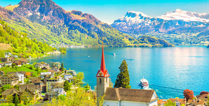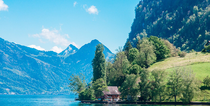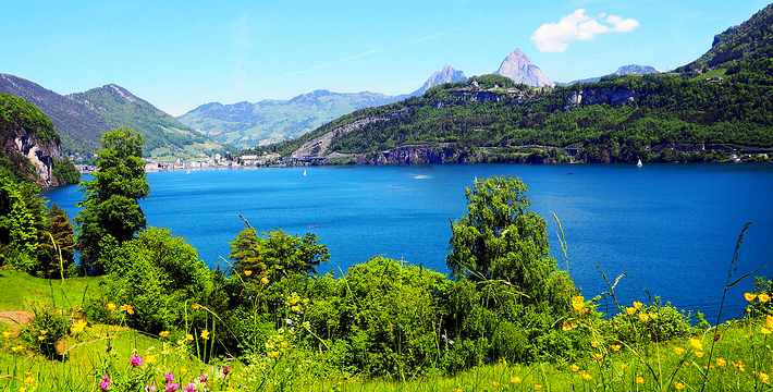 瑞士中部的重要湖泊。地处陡峭的石灰岩山地中间,湖光山色相映,风景如画。面积114平方公里(44平方哩),长约39公里(24哩)3公里(2哩)214公尺(702呎)。霍尔夫(Horw)、比尔根山(Burgenstock)、马根霍恩(Maggenhorn)等巨大岬角伸入湖中,湖形曲回。罗伊斯(Reuss)河穿湖而过,穆奥塔(Muota)、恩格尔贝格(Engelberger)等河注入湖内4个州的中心地带,有许多历史传说,例如,传说瑞士联邦奠基人曾在湖西岸集会。琉森城位于著名夏季旅游区,是湖畔主要城镇。