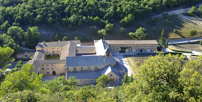 塞南克修道院位于普罗旺斯Luberon地区的Vauclus山沟内,山路比较崎岖难走,而且是单行线。古朴的塞南克修道院修建于1148年,1152年的时候由于人丁茂盛而扩建。其中有四个磨坊、七个农庄,占有大面积土地。从1509年以后开始衰落,失去了以往的辉煌。1854年被(Confraternita dell'immacolata concezione)宗教社团买下,之后重新翻修。直到1904年以后这个这个宗教社团被迫搬出。1904年以后由六个修道士管理并加固一新。