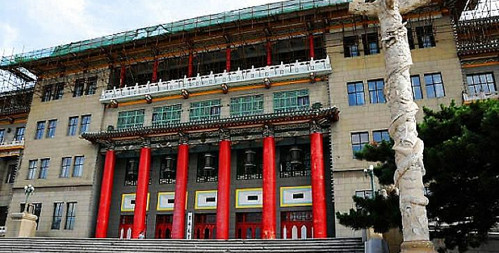 “八大部”于1936年间基本建成,唯有溥仪的“新皇宫”(今地质宫)只完成地下部分,而金碧辉煌的宫殿,是解放初完工的。宫殿,华丽中透着古朴,翠绿色琉璃瓦的宫顶,高大的六根红柱,使整个宫殿庄严雄伟。宫殿占地31.2公顷。殿前的广场已改建为文化广场,是人们观光休闲的理想场所,那绿色的草坪、白色的广场鸽以及壮美的雕塑太阳鸟每天都吸引着大批游人。站在宫殿的中轴线上向南望去,一条宽阔笔直的大街直插南湖公园,宽约60米,两侧是高高的杨树,中线花坛是松、柏、丁香树带,通街象一条绿色长廊。“八大部”办公楼坐落在沿街两侧。