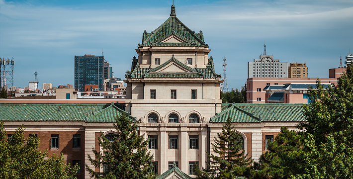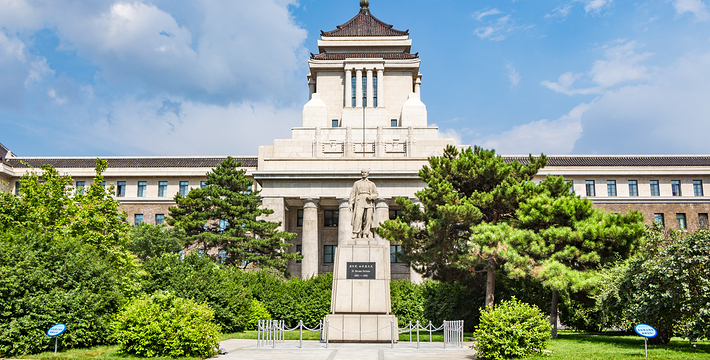 伪满八大部位于长春市中心的新民大街附近,包括伪满洲国的八大机构(治安部、司法部、经济部、交通部、兴农部、文教部、外交部、卫生部),建成于1936年。八大部各幢大楼的建筑风格都各不相同,集中西方风格为一体,既有外观宏伟的大楼,又有垂花拱门的庭院。在新民大街两侧,满是高大挺直的杨树,这八幢建筑独特的大楼就繁华绿树之中隐隐而现,将这条街装点得典雅清净。