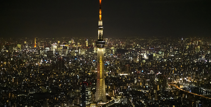 东京天空树(Tokyo Sky Tree)位于日本东京都的墨田区,用于取代1958年建成的东京塔,承担日本关东地区数字电视信号的发射。“东京天空树”于2008年7月开工,2011年3月18日其主塔高度达634米,超过了中国的“广州塔”。在上面可以俯瞰整个东京。“东京天空树”工程于2008年7月14日开始动工,并于2012年5月22日投入运营使用。在3年多的建设过程中,未发生一起人员伤亡事故,也经受了2011年3月的东日本大地震的考验。它将取代1958年建成的东京铁塔,承担关东地区地面数字电视信号的发射任务。整个“东京天空树”塔身银中带蓝,高耸云霄,与天空背景浑然一体,非常壮观。在“东京天空树”本体旁,还将兴建一栋地上31层、地下3层的附属大楼,主要作为商办使用,并预定设置约1100个车位的停车场。“东京天空树”启用后,估计每年可以带来约480亿日元的经济效益,包含电视台所支付的租金,以及观光门票收入等。