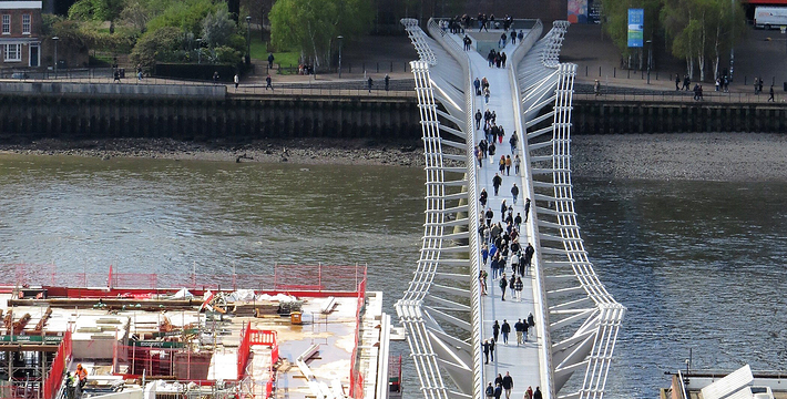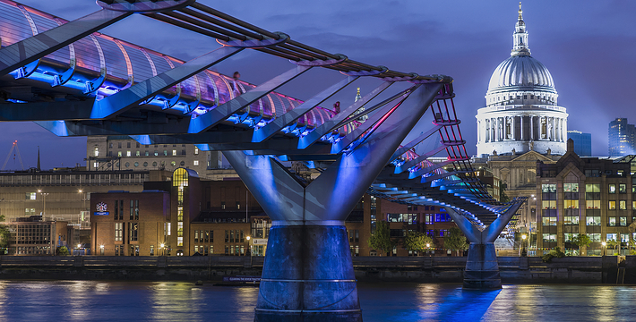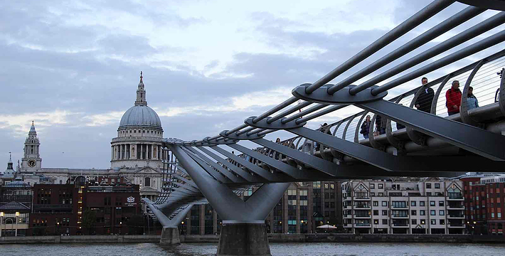 千禧桥横跨英国伦敦的泰晤士河,全长325米,连接了圣保罗大教堂,以及对岸的泰特现代艺术馆,可以同时让5千人使用。千禧桥于1999年落成,于2000年5月13日正式开放,是泰晤士河上年轻的桥梁,也是泰晤士河上一座现代化建筑。