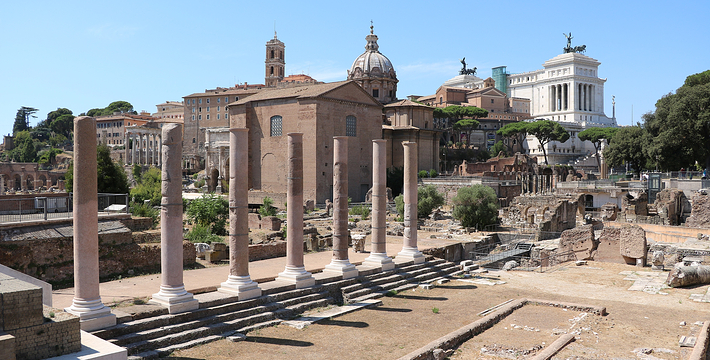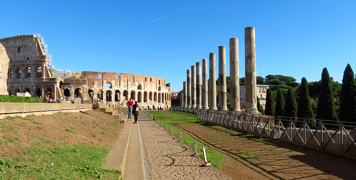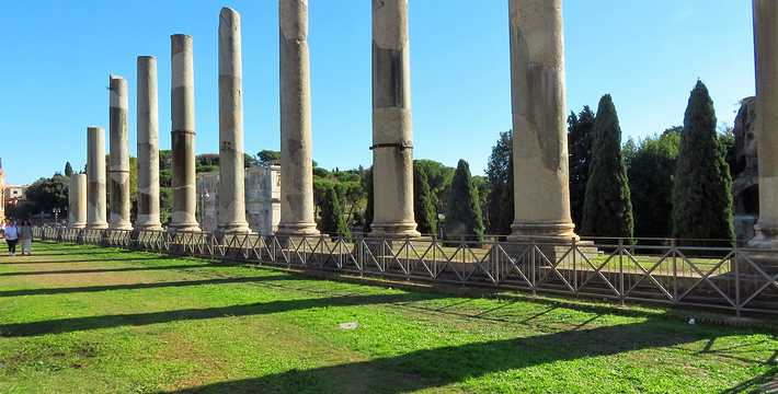 这里有很多历史遗迹,包括“神圣大道”、已经完全变成了废墟的凯撒的大会堂、火神维斯塔的神殿、提特乌斯大帝的凯旋门、帕拉提诺丘等。