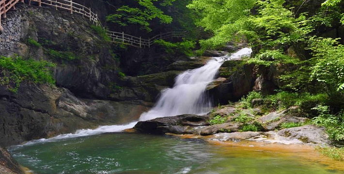 五龙河旅游风景区位于银福高速郧西出口18公里处4A级旅游风景区。景区主要河流五龙河,位于郧西县东北部,发源于秦岭南麓鄂陕交界的天池岭,全长58公里,面积358平方公里,核心景区(五龙河旅游风景区)9.5公里。整条河流,终年水流湍急,水质清澈,水量稳定,是著名的“七夕”天河上游的一条重要支流。五龙河因孕育道教传说中“五龙捧圣”之五龙而得名。它因五龙而祥瑞、因道仙而扬名、因古猿而神圣、因奇秀而清雅。其山谷之幽深,河水之清澈,群山之奇丽,五龙之美名,仙道之灵气,令人心旷神怡,叹为观止。是当之无愧的休闲度假、科学探险、摄影绘画、吟诗写作、修道养生、返璞归真的人间天堂,素有“中国小九寨”和“纯天然氧吧”之美誉。五龙河旅游风景区不仅有神奇秀丽的自然景观,而且有丰厚久远的文化背景。古猿人头骨化石“郧西人”,它的遗址就在五龙河东坡神雾岭白龙洞。他们的生活年代,比闻名世界的北京猿人还要早40万年。而历史文化中的五龙捧圣、封神大战、闻仲归天、老庄问道、商山四皓、织女下凡等传说,更为五龙河增添了神秘飘渺的文化背景。