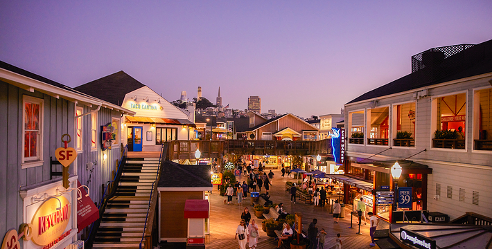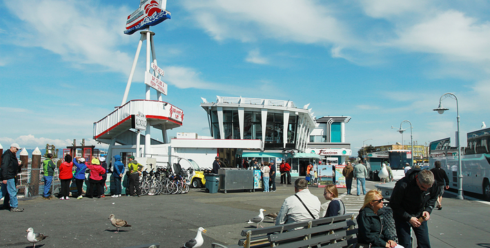 作为旧金山的招牌景点,渔人码头不仅受到游客的欢迎,本地人也将这里视为一个休闲的好场所。到渔人码头,在浓浓的“海味”的熏陶下,平日里十分繁忙的旧金山人显得十分惬意。渔人码头的历史可以追溯到19世纪50年代。当时,一位商人为了方便自己的木材生意,在这里修建了一个170平方米左右的码头。没想到,码头刚一建成,就引来众多劳工,廉价的餐馆与酒吧也纷纷落成,生意十分火爆。那一时期,活跃在渔人码头的多是意大利移民,他们的淘金梦破灭后,凭着一手捕鱼的好技术,把渔人码头办成了旧金山水产品的集散地。