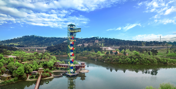 整个景区依托三国文化为背景,以诸葛亮和黄月英的爱情文化为主线,以黄承彦的隐士文化为辅线倾力打造。景区结构布局为“一廊、四区。”一廊:襄隆路至景区的景观引廊;四区:综合服务区、三国意境体验区、滨水度假区、休闲运动区。景区内景点:阿丑文化广场,三星殿,月老祠,听涛阁,麒麟谷,福寿亭,松海楼,黄公祠,天元居,承彦书院,隐士草屋,二十四孝浮雕,开心乐翻天,自助烧烤,滑草,滑索,游船,疯狂老鼠,CS野战,沙滩车,射箭场等等,让游客游得开心,玩儿的尽兴。