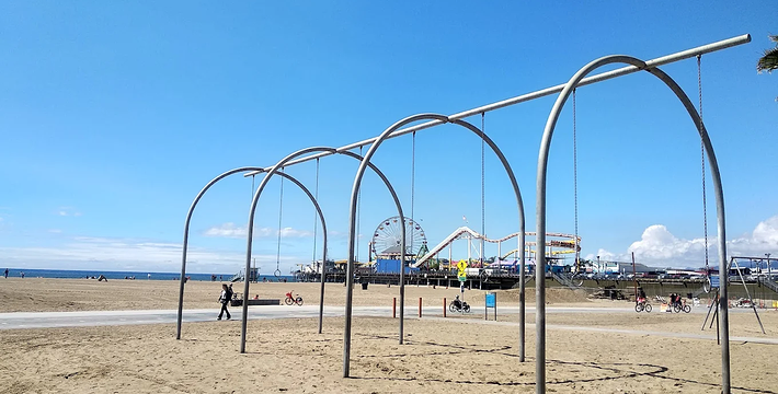 圣莫妮卡海滩常年都有澄清的蓝天,也是泰坦尼克号的拍摄地。适合游客前往休憩。标志性建筑物是海边游乐场,过山车、摩天轮就建在陆地延伸至海的栈桥上,圣莫妮卡海滩旁的66号公路也有很多故事。电影《阿甘正传》里阿甘奔跑着穿越了66号公路,王家卫的《蓝莓之夜》里,诺拉·琼斯也是踏上66号公路到达洛杉矶。