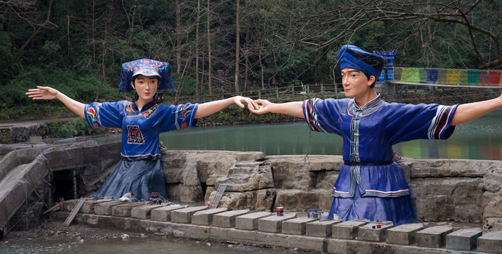 布峡谷距平塘县城64公里处,是大自然鬼斧神工的杰作,6平方公里的景区内,集奇石、奇洞、奇山、奇水、奇竹、奇树、奇鱼“七奇”景观为一体,地质奇观在这里辉映。景区河谷两岸山高林密,河水清澈透明,藤蔓交织、溶洞密布、喀斯特特征明显,沿溪而上,水里是天、树、石的倩影,倏尔闪烁的银光,是鱼在欢畅地舞蹈,自然景观奇特迷人,尤其以“*”上显现的“中国共产党”五个字型堪称世界地质奇观,令人称绝。其玄机深奥,诱人前往探秘。