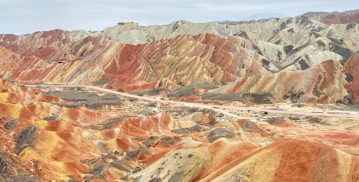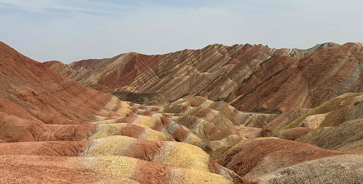 地貌色彩艳丽、层理交错、气势磅礴、场面壮观而称奇,是一种独特的地貌类型——彩色丘陵,色彩之缤纷、观赏性之强、面积之大冠绝全国。