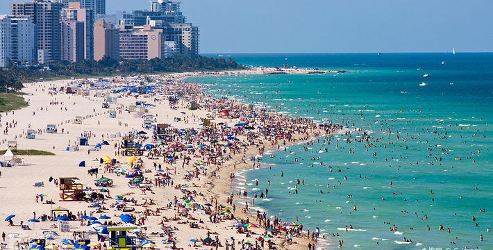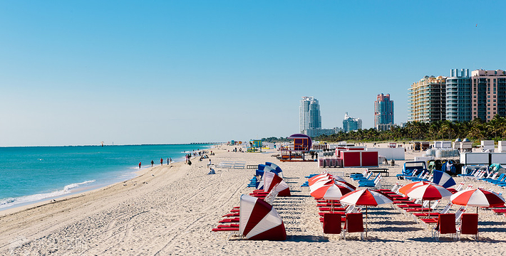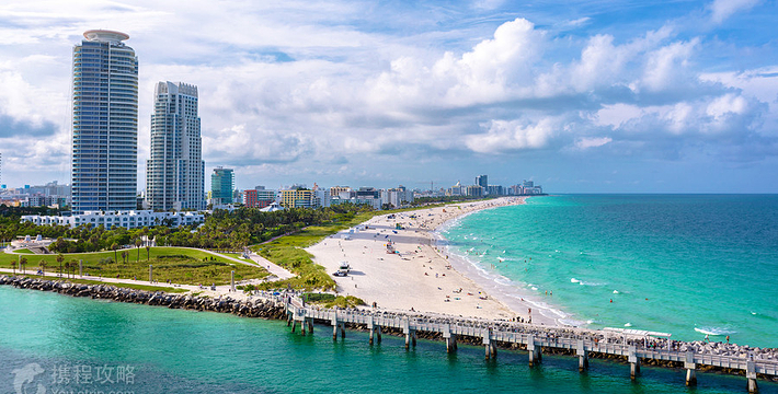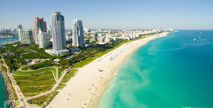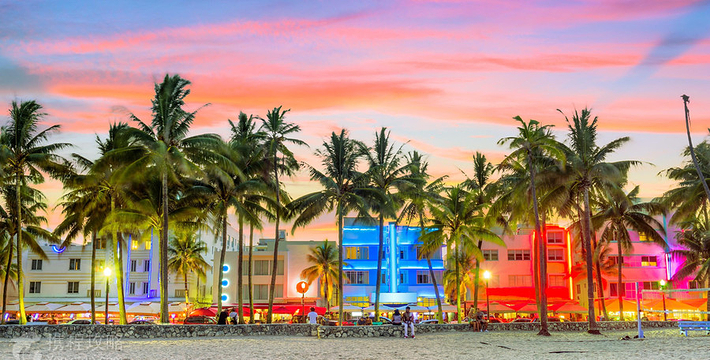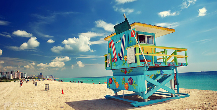 迈阿密海滩是美国著名的海水浴场,也是全世界名列前茅的观光胜地。迈阿密海滩绵延4英里,向东横跨比斯坎湾。雪白的细沙、蓝绿的海水、一排排棕榈树代表者迈阿密海滩。