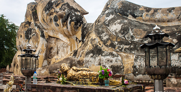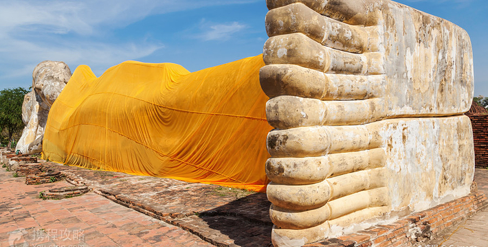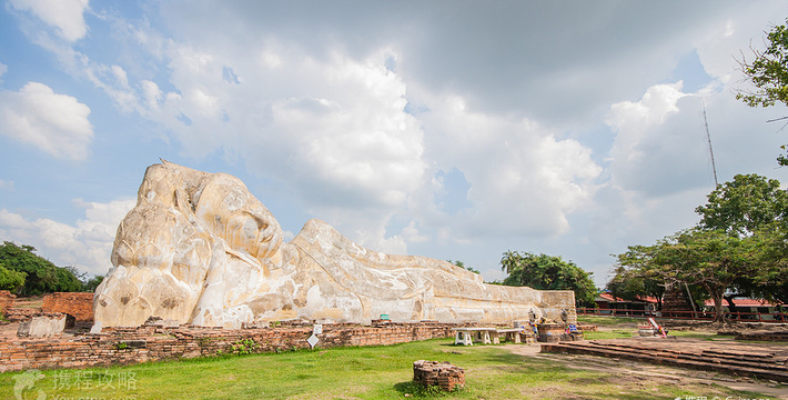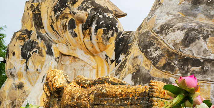 依照目前的情况,罗卡雅苏塔寺(Wat Lokayasutha)应该不能再称做寺,因为它已经是一片蔓草,没有任何建筑物存在, 只有一座塌了一半的塔及著名的大卧佛,也因为如此,当地人称罗卡雅苏塔寺为帕侬寺(WatPaNo),即[卧佛寺]的意思。罗卡雅苏塔寺位于古皇宫得后方,约建于艾尤塔雅中期,仅剩的卧佛睡在莲花座上, 很特别的是它头上没有法镙,就象戴了一顶帽子,含着微笑很安详地在晒太阳。