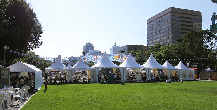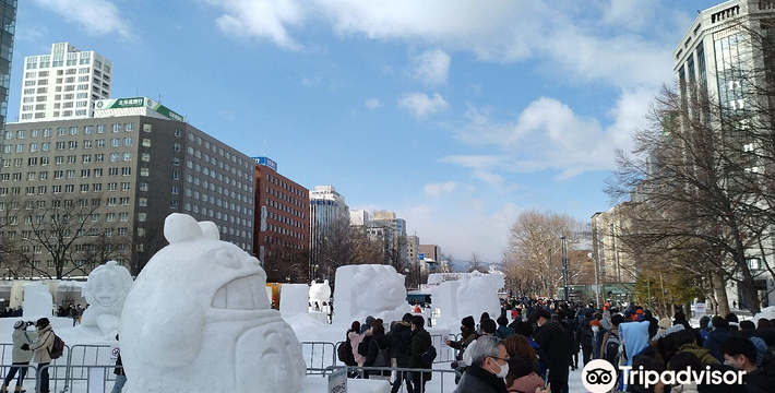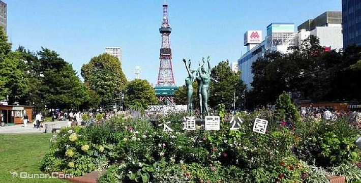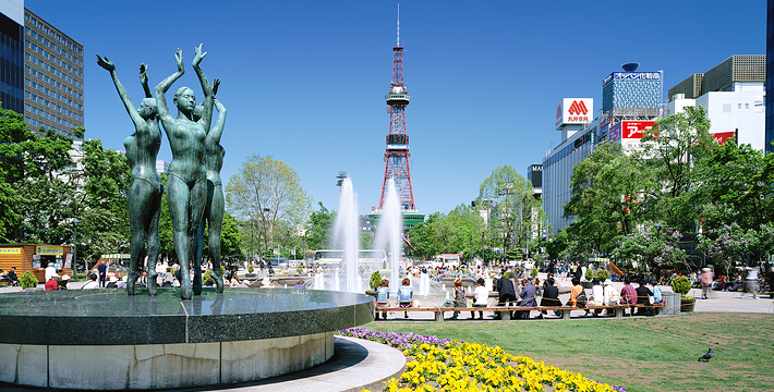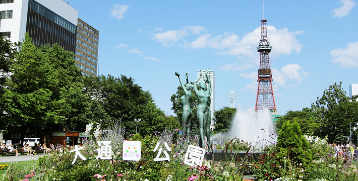 公园两旁立有许多著名的雕塑。游客可在园内乘电梯,直达公园内的电视塔顶,塔高147米,可眺望札幌市全景。公园旁的烤玉米和马铃薯,更是不能错过的美味。“札幌雪节”的主要场所之一就在这里。登上公园东端的电视塔展望台,札幌街景一览无遗。公园长1.2公里,宽65米。这块都市绿洲将札幌分为东西两半。由喷泉、绿树和鲜花点缀的公园是市民休息的场所,也吸引了来自各国的游客。札幌市的市花紫丁香排列在大通公园两侧,每逢五月开出紫色的花朵。这里夏天还设有“啤酒广场”。