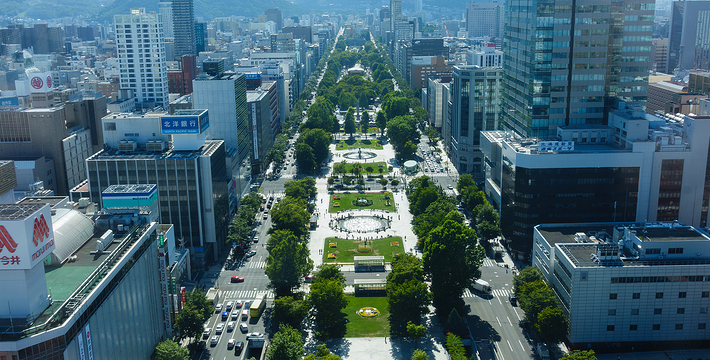 大通公园是札幌的东西中轴线,以此为中心向南北伸展。有札幌心脏之称。大通,日语的意思为“大道”,公园内花草茂盛,有喷水池、露天剧场、纪念碑,是市民休闲的场所。在冬季显得特别美丽,银白色的雪地里满是装饰得五光十色的树木,夜晚也明亮如昼。冬季的冰雪节即在此举行。