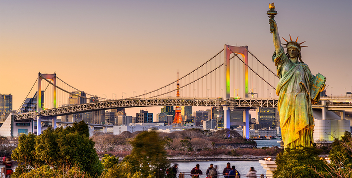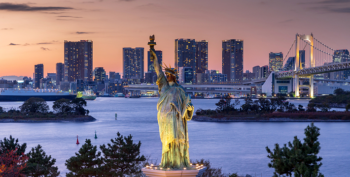 台场或称御台场,位于东京都东南部东京湾的人造陆地上,台场的取名有这样一段来由:1853 年,美国人佩里率船队来到日本,当时东京还称江户,由于防卫上的紧急需要,匆忙赶制了海上炮台设置在此御敌,从此这里便称为台场。