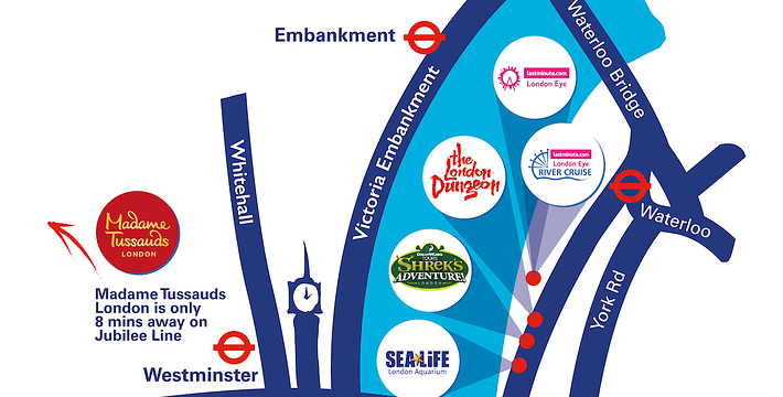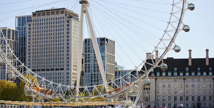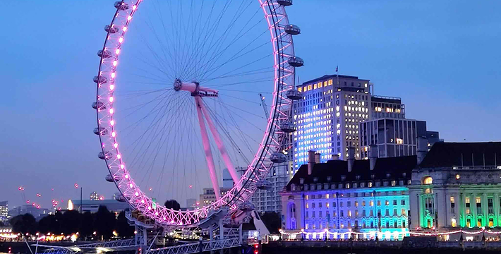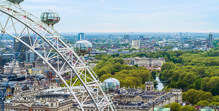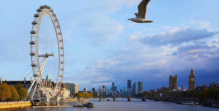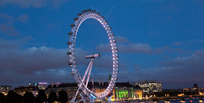 英航“伦敦眼”(British Airways London Eye)是为迎接千禧年而建造的,高达135米,伦敦眼”(British Airways London Eye)构成了伦敦天际一道亮丽的风景线,现在已名列伦敦各旅游点榜首。这个千禧摩天轮,伦敦眼”(British Airways London Eye)由平台处的两座马达带动旋转,有60个封闭座舱,每舱可容纳20人,舱内装有太阳能电池,提供通风、照明和通讯系统的电力。游客在“伦敦眼”中半个小时就可到达城市中心上空俯瞰城内的壮丽景色,可以欣赏超过55处美不胜收的画面,每到一处还有附有解说。夜间的伦敦眼更有一种梦气幻质,巨大的蓝色光环把泰晤士河映衬得更加美丽。