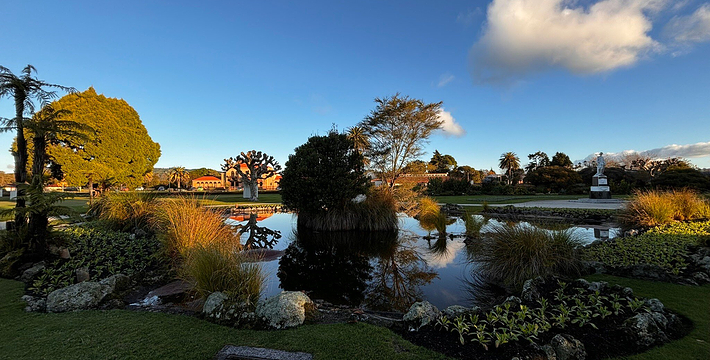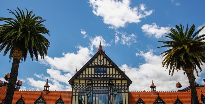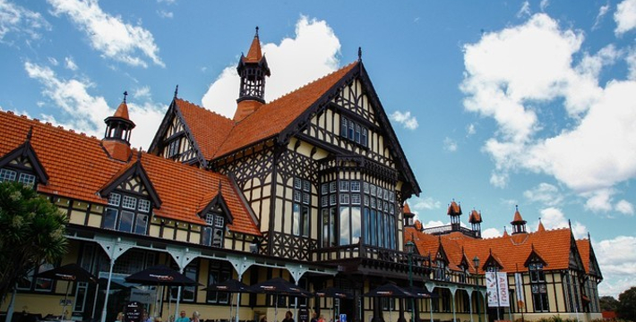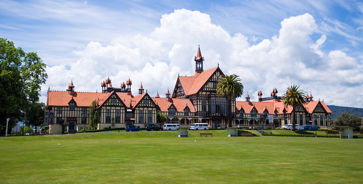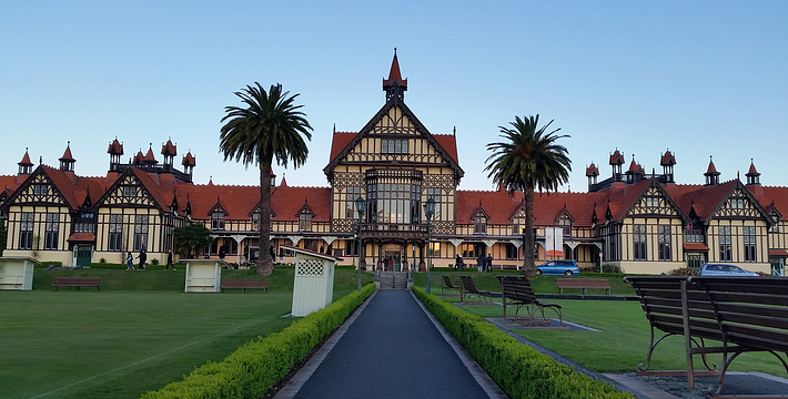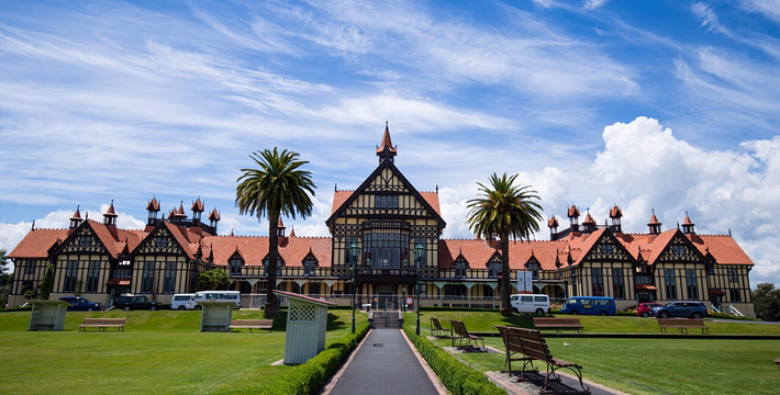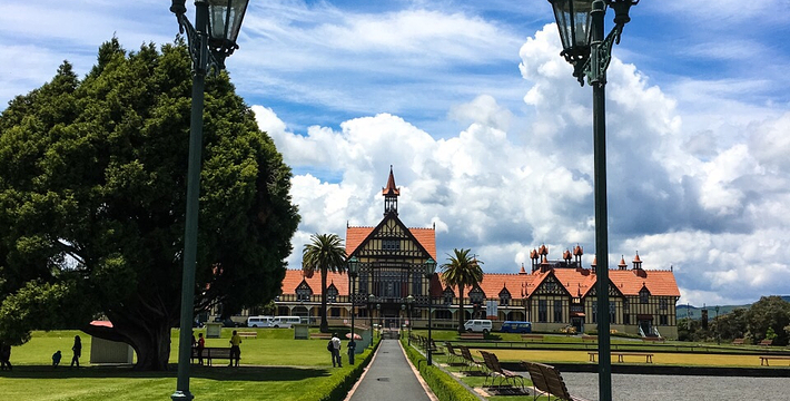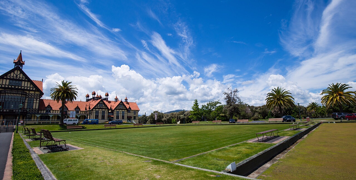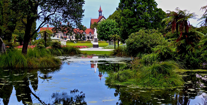 政府花园所占据的这块地,原为毛利人所有。这里原是一片灌木覆盖的地热区,毛利人称其为帕帕库马纳(Paepaekumana),毛利人在这片土地上留下了太多战争的记忆。19世纪后期毛利人将它赠予了政府,后者对它进行了大刀阔斧的改造:将灌木清理干净,改种正统的园林植物,把这片土地改造成一座漂亮优雅的罗托鲁瓦湖畔温泉景区。罗托鲁瓦艺术和历史博物馆和波里尼西亚温泉都坐落在政府花园内。即使不去博物馆参观不去泡泡温泉,单单在这收拾得一丝不苟的公园内漫步,感受罗托鲁瓦的蓝天绿地清风,也是一件无比惬意的事情呢。