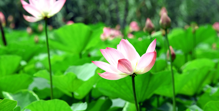 万顷红荷盛放的天然湿地