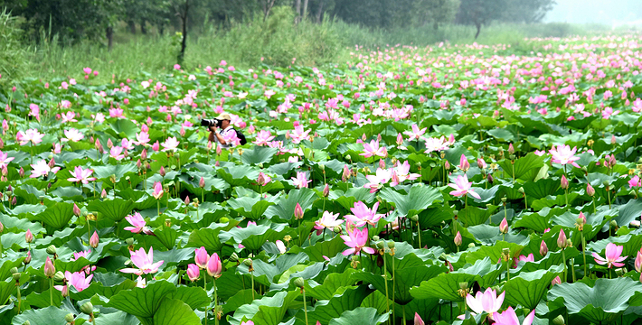微山湖湿地红荷风景区濒临微山湖,拥有国内罕见的水泊林海和丰富的物种资源,以钟灵毓秀。
