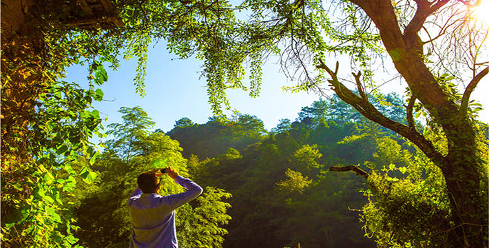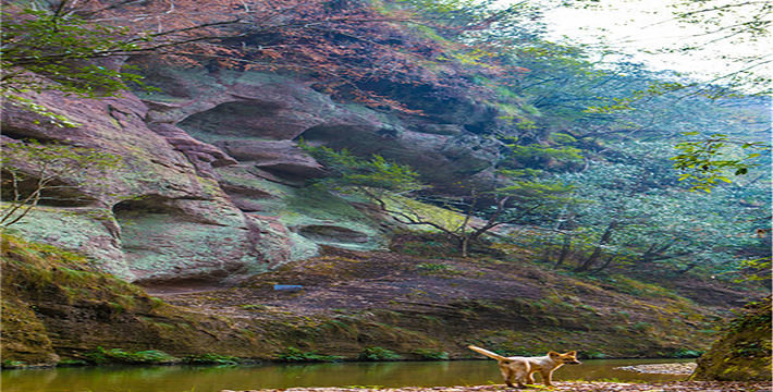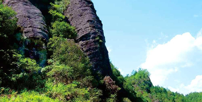 天成奇峡曲径通幽,沟壑深切,峭壁如削、云锁雾绕、幻若仙境。景区内古树参天,奇峰林立,山藏丹霞之灵宗,水融天地之灵气。