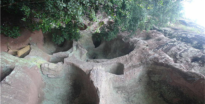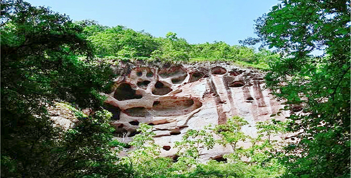 景区内古刹始建于北宋时期的“天成岩寺”“狮子岩寺”“会圣岩寺”均建在崖穴里。天成岩寺在天成岩峰顶。峰顶兀立一块巨崖,崖底是一洞穴,面积200余平方米,天成岩寺就建在其中。诗云:“寺入山崖石做瓦,佛观殿外嶂连崖。碧空崖上水滴泄,胜似阳春雨打花。”