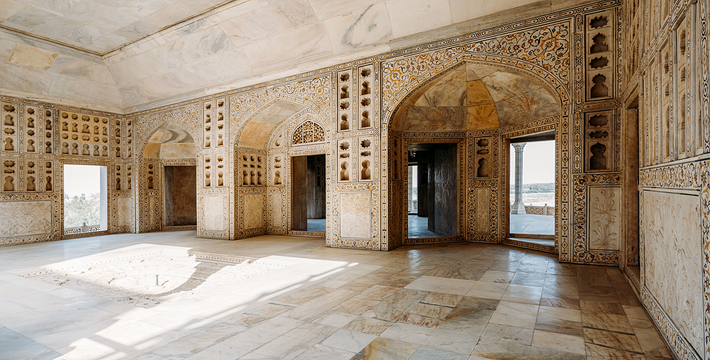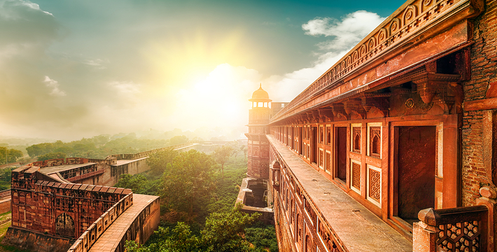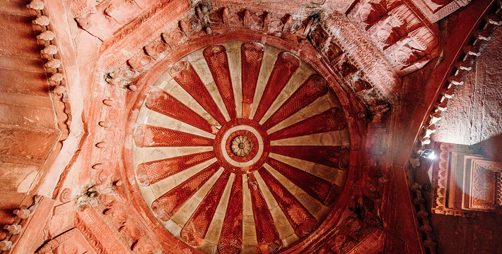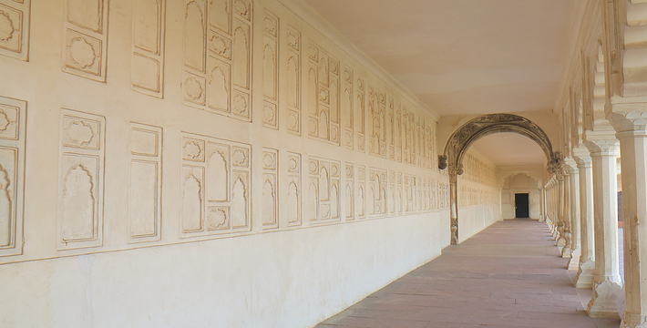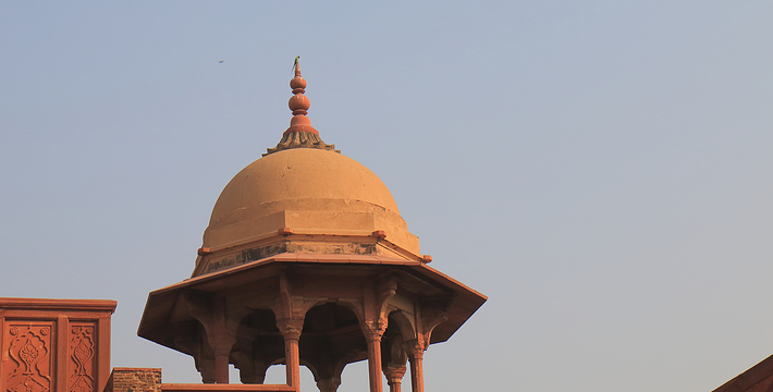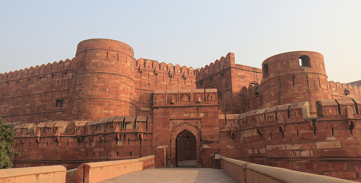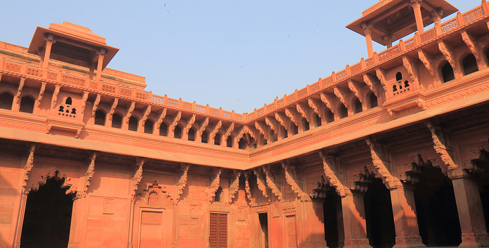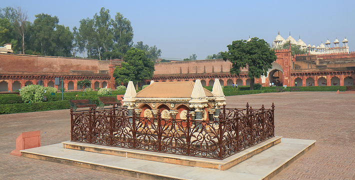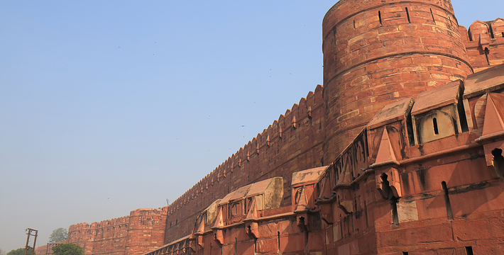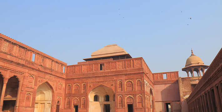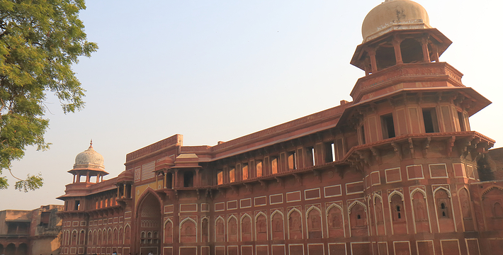 阿格拉堡位于亚穆纳河畔的小山丘上,距泰姬陵约15分钟车程,全部采用红砂岩建造而成,故又称红堡,与首都德里的红堡齐名。这座方圆1.5平方公里的宫堡外形非常雄伟壮观,城内的宫殿虽经历漫长的岁月多已失修,但画梁和墙壁上精巧的雕刻与设计仍隐约保存着昔日富丽堂皇的风貌。