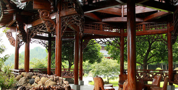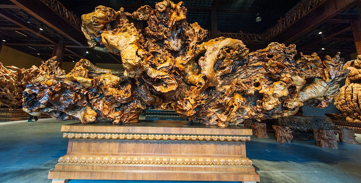 中国根艺美术博览园占地360余亩、由衢州醉根艺品有限公司投资4.5亿开发,工艺美术大师徐谷青先生精心创作,以盆景、奇石、根艺、园林古建构成恬静自如、天人合一的画卷,汇聚各类植物、名贵树种160多种,有猫头鹰、山雀鹰、长尾蓝雀、红嘴相思鸟、白头翁、画眉等36种鸟类常年在此栖息,主要有福门祥光、中国根雕佛国、中国根雕博物馆、中国根雕历史人物博物馆等二十多个景点,陈列盆景奇石作品4000余件,佛儒道、民间神话传奇、历史风云等系列大型根艺作品2000余件40余吨、华夏一绝,此外还展示根艺文献资料、根艺大师代表作,工艺流程和醉根文化等,是一部根艺美术的四库全书,堪称世界根雕艺术之都。这里拥有青梅园:青梅园依山而建,叠山理水,与亭台楼阁相呼应,园名取自徐谷青的“青”字和他老家梅林的“梅”字,有各类盆景3000余盆,造型博采众长,创意自然,有小桥流水田舍人家的水旱盆景,有浓缩华山天险的附石盆景,有的以石为盆回归自然,有的三五成林意境高远,大自然的千奇百怪,于方寸间一览无余。百木同春:这是个充满悲壮色彩的雕塑群,是浙江省首批生态环境教育示范基地,陈列有千年枯树名木和阴沉木二百余件,是远古的历史缩影,千年的沧桑记忆,经过艺术创作,成为钱江源头环保的一面鲜明旗帜。这套巨型根艺五佰罗汉,是徐谷青大师经过十余年的精心准备,花巨资收集全国各地千年龙眼木等根桩创作,风格独特,气势恢弘,既有佛的神秘,又与人生百态相映,他们三五成群、或交头接耳、或悲或苦、或孤座独立,或慈眉善目,或闭目凝神,全神贯注,妙相庄严;有的胸腹袒露,似笑欲语;有的拄杖持珠,合十摊手,有的挖耳捏鼻,天真烂漫,有的丰额宽肩,悠然自得;有的秃头长耳,满脸胡须;有的大腹便便,双手垂肩,有的捧腹搔耳,笑容可掬;有的诵读经卷,念念有词;有的伸足屈膝,打坐箕踞……在传统的雕刻技法中融汇了现代艺术的创新理念,使罗汉系列情表于外,意韵其中,典雅且通俗,使根雕艺术和佛教文化珠联璧合。
