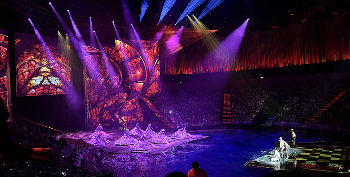 水舞间剧场是一个270度的圆形剧场,每个角度都非常精彩: 从在C 区座位观看表演,演员眉睫间的举动也能放大欣赏; 在 B 区中站起来可与舞台剧演员近距离接触; A 区座位的观众能纵观全场景色; 数量有限的VIP区,则为您呈献剧院内最佳之观赏位置。