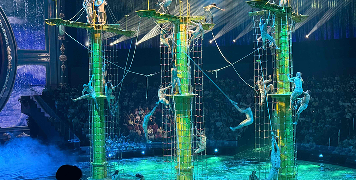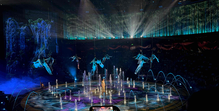《水舞间》,已于2010年9月17日在《水舞间》剧院盛大公演。此耗资超过20亿人民币的巨铸,由新濠博亚娱乐有限公司联*兼行政总裁何猷龙先生精心打造,德拉戈(Franco Dragone)先生亲自执导。水上汇演耗资巨大,由来自全球18个国家约77个国际汇演演员、以及约130个制作和技术人员经过了五年的筹划和两年的排练才得以和观众见面。此剧在表演时将配以令人耳目一新的服饰及独特的视听效果。整个大型水上汇演是一个穿越时空的史诗式爱情故事,将带领观众进入一个魔幻无边的奇妙国度,经历截然不同的情感之旅,从哀、怒的深渊出发,直至喜悦的高峰,徘徊在恐惧的边缘。这个超越拉斯韦加斯制作的惊世汇演,将带您进入前所未见的视觉震撼新里程。让我们一同莅临澳门新濠天地——水舞间!当你仅仅以为《水舞间》只是一个水上杂技的话,你就大错特错了。《水舞间》讲述的是一个穿越时空的爱情故事,以这个故事作为主线,把芭蕾、高空跳水,带你走进奇妙的玄幻国度,经历动人心弦的历险之旅。你见过相当于5个奥林匹克标准泳池的容量的水上演出场馆吗?而这个水上舞台可以在1分钟内变回陆地舞台。你见过从26.5米高空跳下的跳水表演吗?还有“高空电单车演出”、“人造吊灯”、“俄国式秋千”,一切动人心弦的演出,都只为保护未来世界的公主而战。